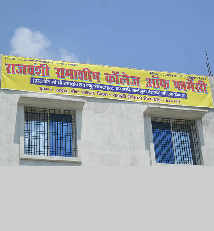 Rajvanshi Ramashish College of Pharmacy, D.Pharm, B.Pharm and M. Pharm courses are available in the college with 60 seats in D.Pharm, 100 seats in B.Pharm, 15 seats in M.Pharm (Pharmacology), 15 seats in M.Pharm (Pharmaceutical Chemistry), 15 seats in M.Pharm (Pharmaceutics). RCP College comes under Sri Sri Ramasish Rai Educational Trust. Which has been established in 2020 in Arera of Vishal district near Hajipur, Bihar. The college is spread over an area of 3 acres and is well equipped with all the facilities. Rajvanshi Ramashish College of Pharmacy College is affiliated to .Bihar Universityof Health Sciences Mithapur, Patna-800001, and approved by PCI and ACTE. The name is included in the Best Pharmacy College College established in Bihar.