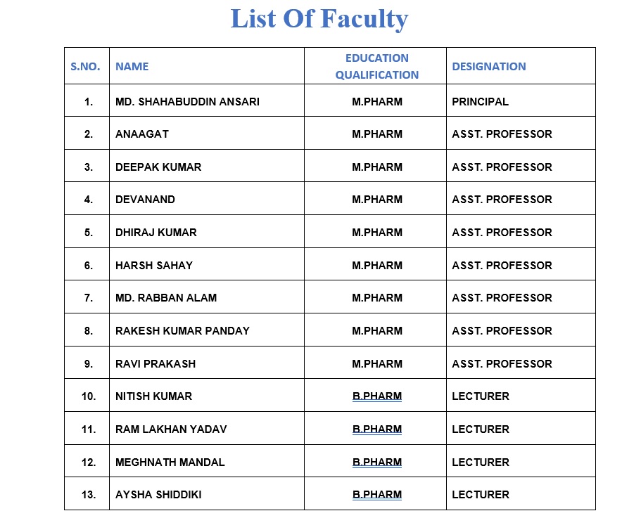 Rajvanshi Ramashish College of Pharmacy Teacher List